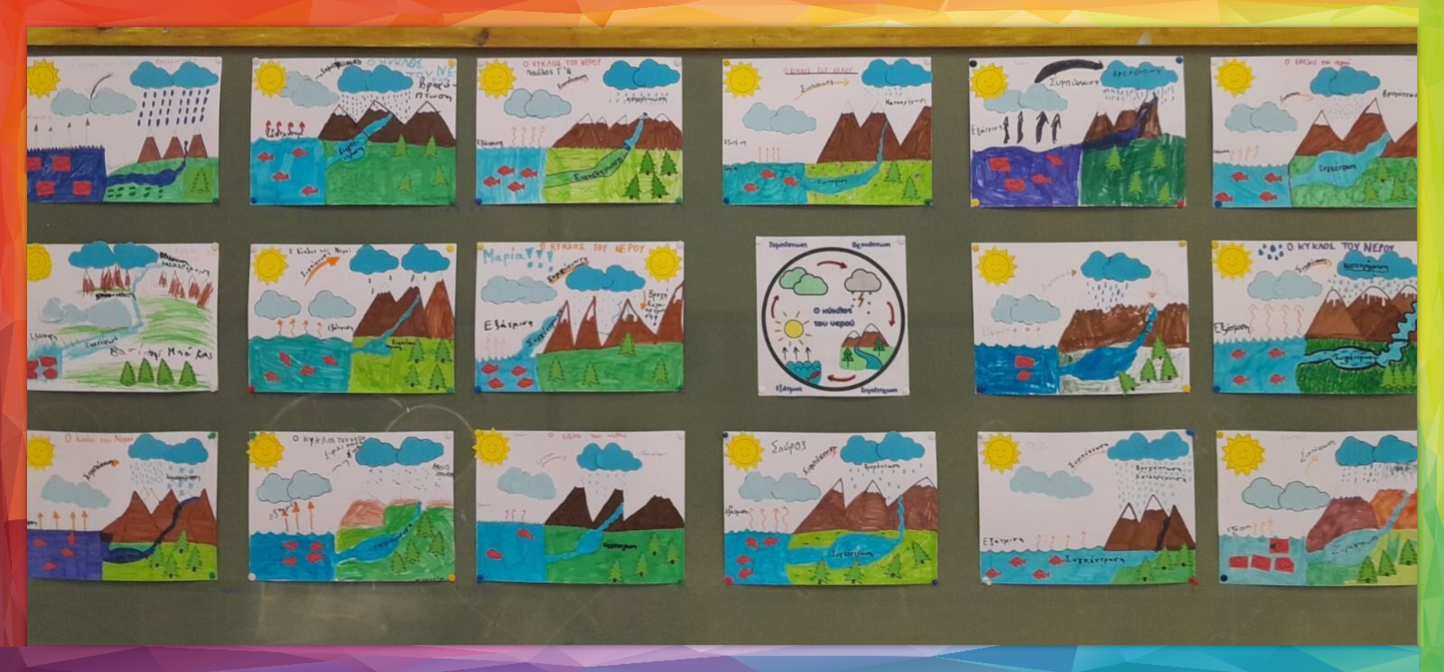 Στα πλαίσια του Εργαστηρίου Δεξιοτήτων και του μαθήματος της Νεοελληνικής Γλώσσας (2η ενότητα: "Ρώτα το νερό ... τι τρέχει") μιλήσαμε για τον κύκλο του νερού. Οι μαθητές παρακολούθησαν σχετικό βίντεο και ύστερα από συζήτηση με τις δασκάλες της τάξης, έφτιαξαν τον κύκλο του νερού σε χαρτονάκι.